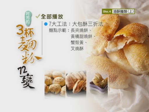 DVD12616--阿芳老師的廚房教室-3杯麵粉72變 DVD 第5集(不用磅秤之3杯麵粉──只要有量杯、量匙和麵粉 72道麵點輕鬆做)(DVD一片裝)